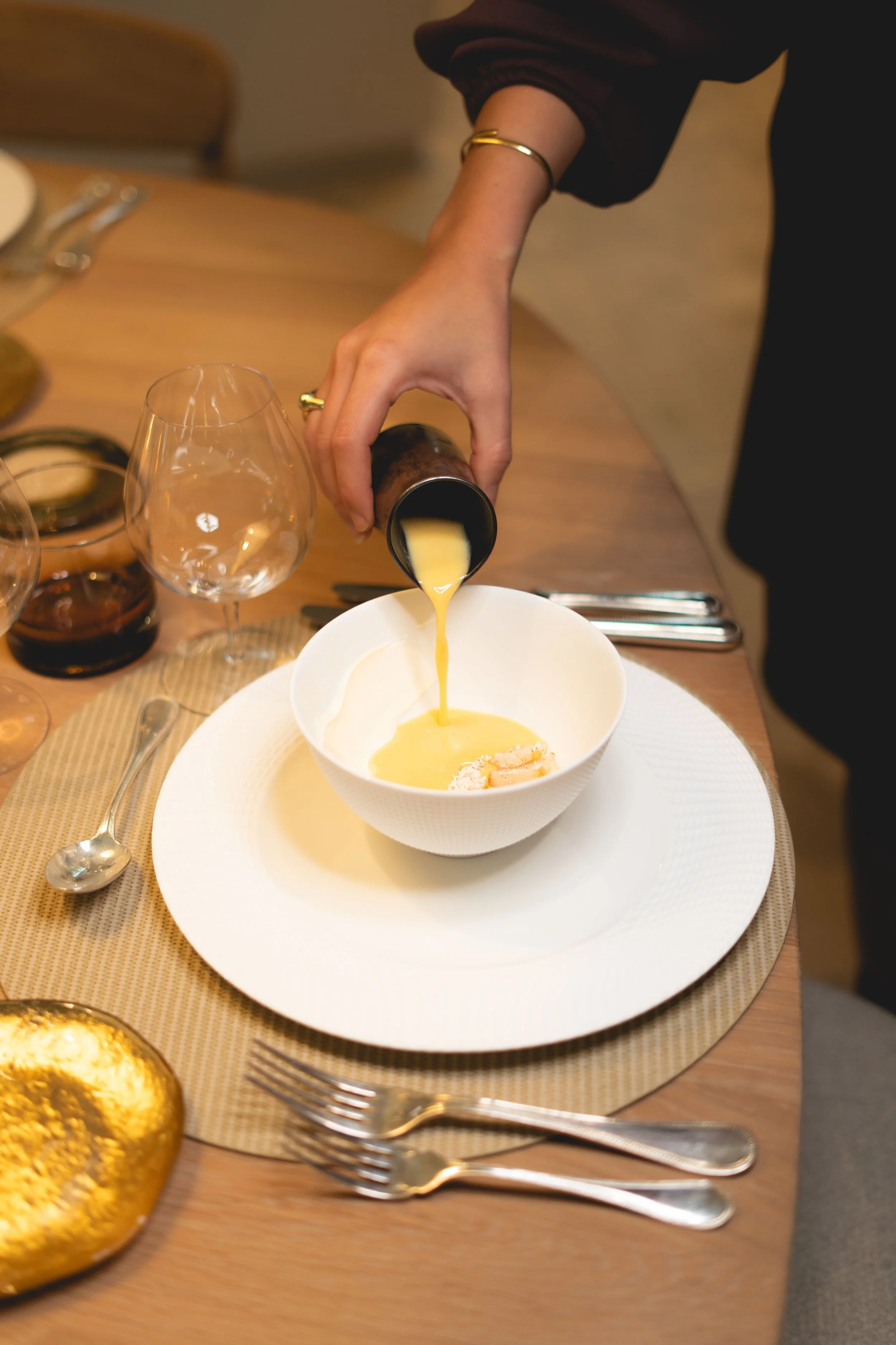 Al onze menu’s worden voorzien op porselein. Dit wil zeggen, receptiehapjes, koude voorgerechten, soepen en desserts. Een bord voor uw hoofdgerecht dient u steeds zelf te voorzien.